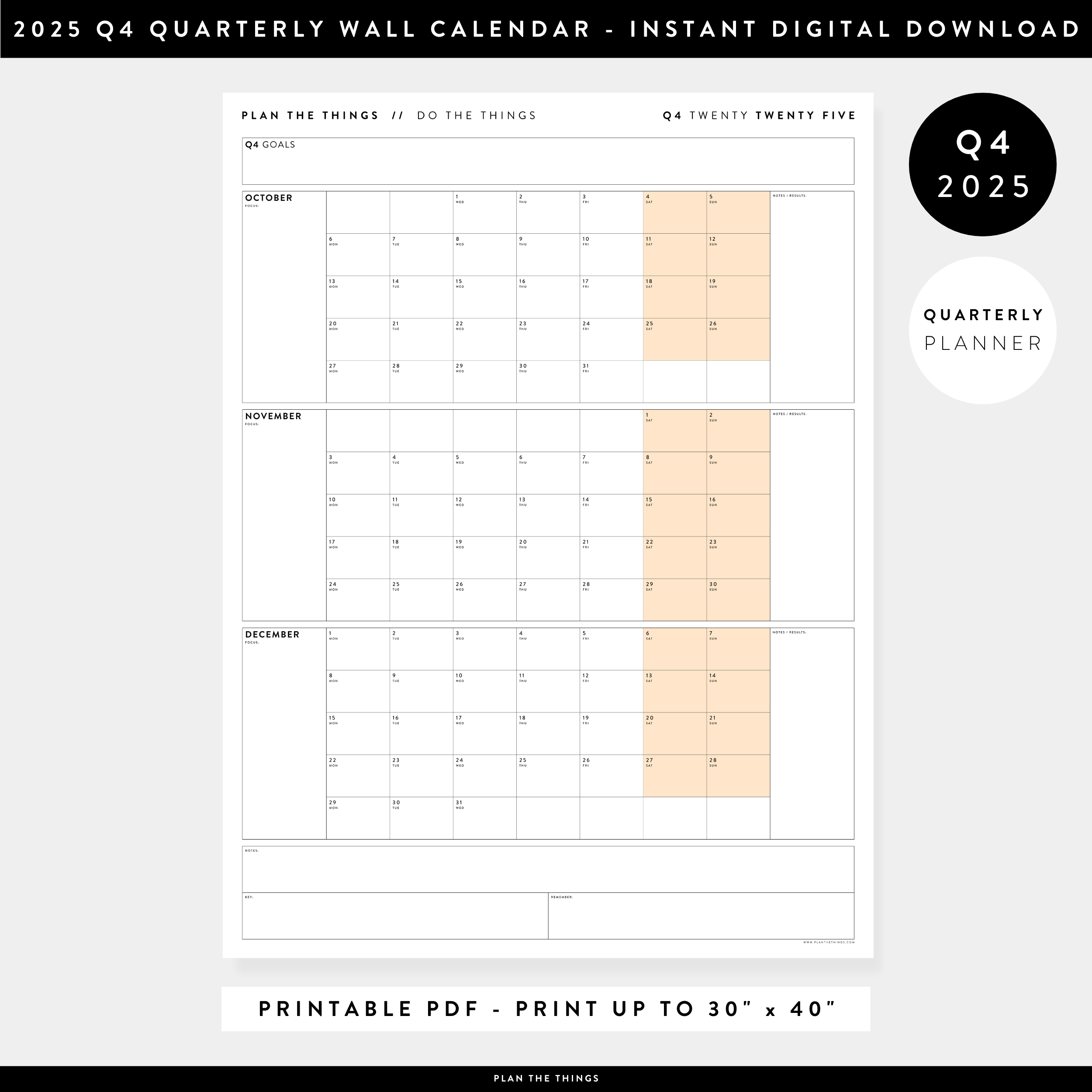 PRINTABLE Q4 (OCTOBER DECEMBER) 2025 QUARTERLY WALL CALENDAR